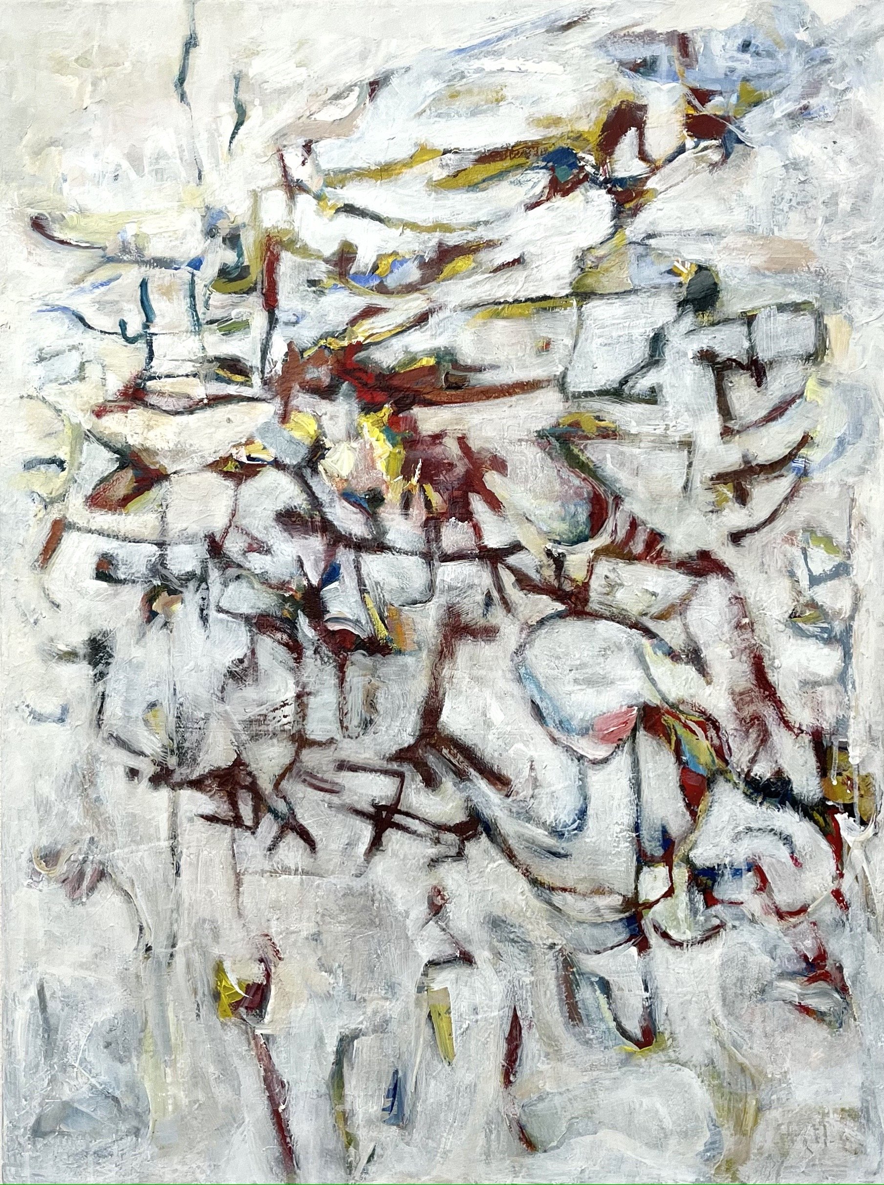 This piece is part of an ongoing series, where the playful, rhythmic marks and motifs are extracted from the background and suggest a sense of musicality, and invoke a calligraphic quality.