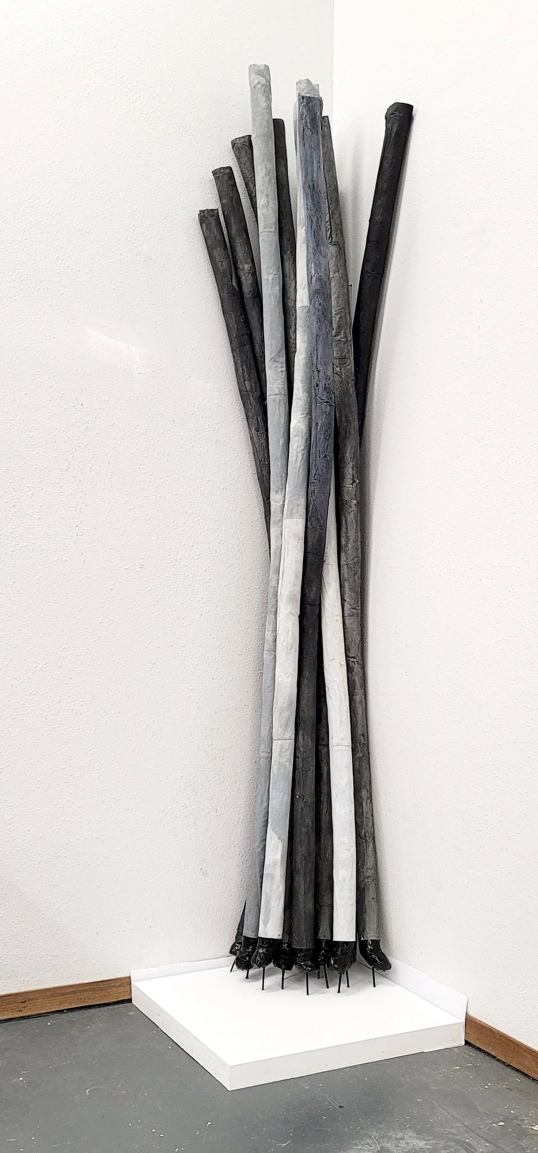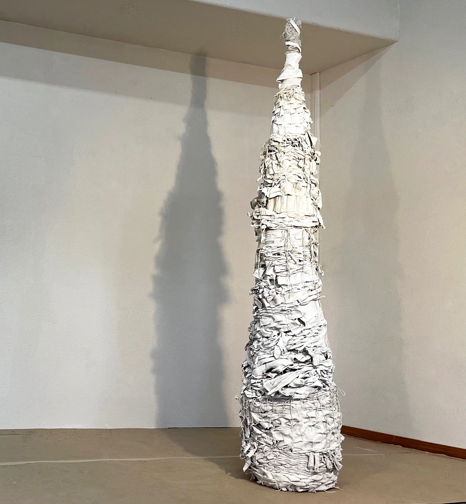These works are made from a variety of discarded textiles, as well as common fibers - both natural and man-made.