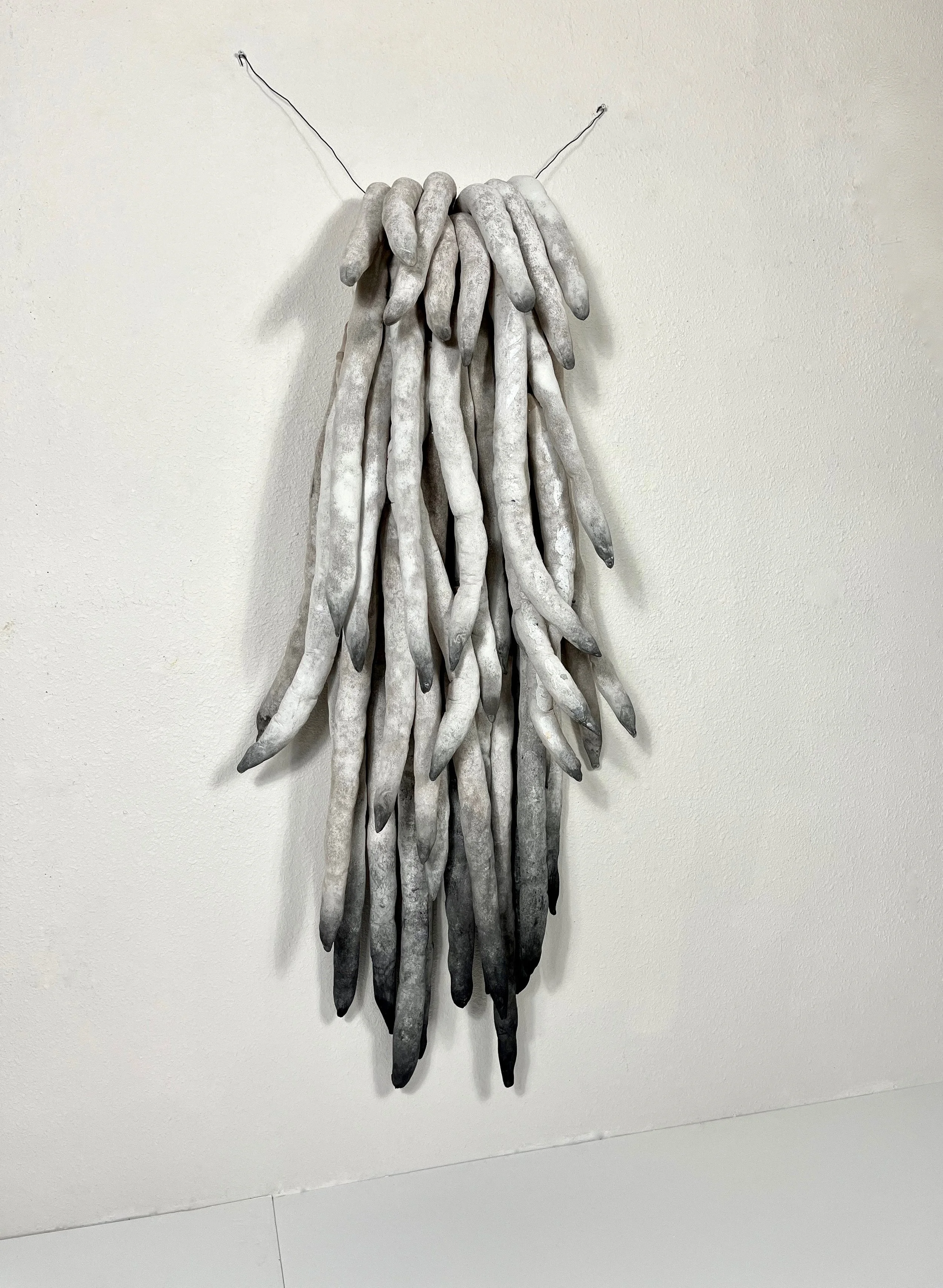 Nylon stocking are an interesting material to work with. Iām intrigued by the history of the material, the associations that it elicits, and the artists from the 1970ās onward who worked with this material.